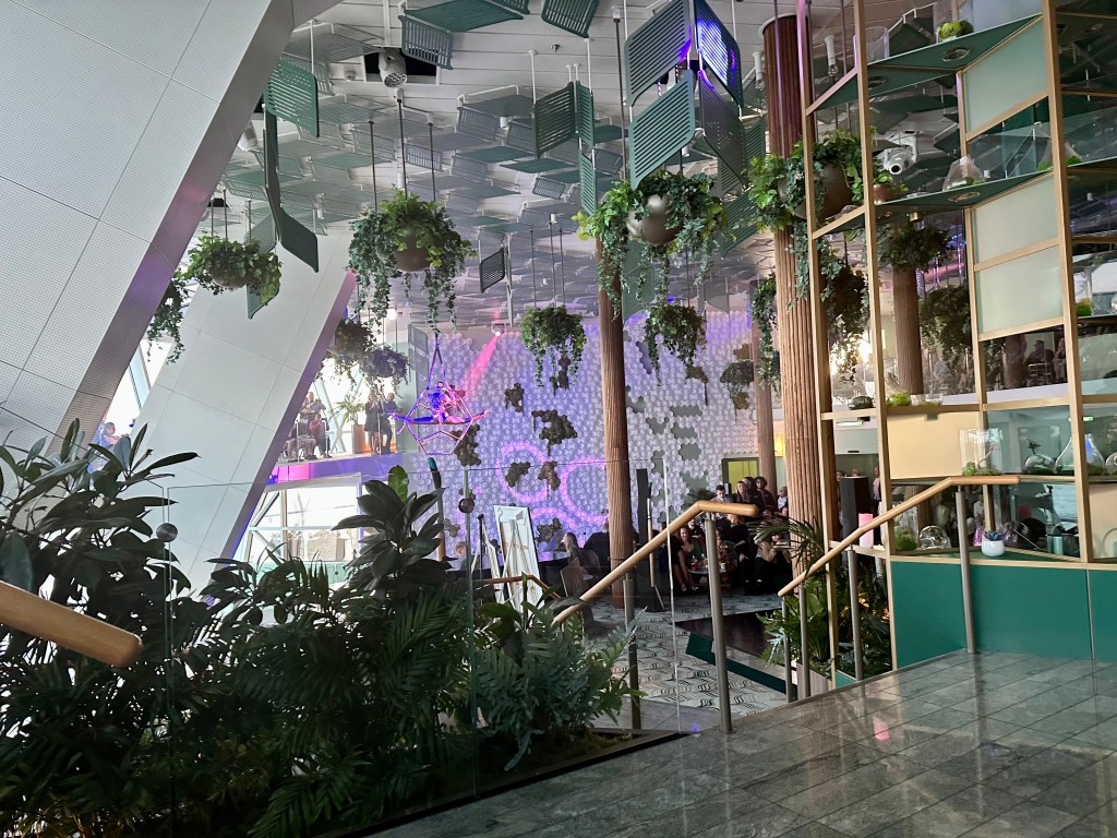 The bright spot to our sea day was that after the evening show in the theater, we ran into Sue and Andy and they met Boris and invited us to join them in Eden for a drink. We had a great time and ended up staying so late that we were there for the artistic performance on the Eden stage. We didn’t have the best vantage point (we were just happy to find seats when we arrived), but we were next to the performers as they entered so it was fun to see “backstage”.