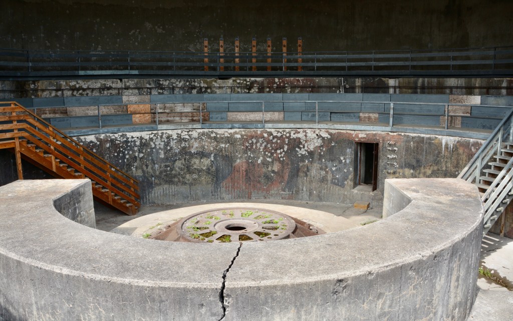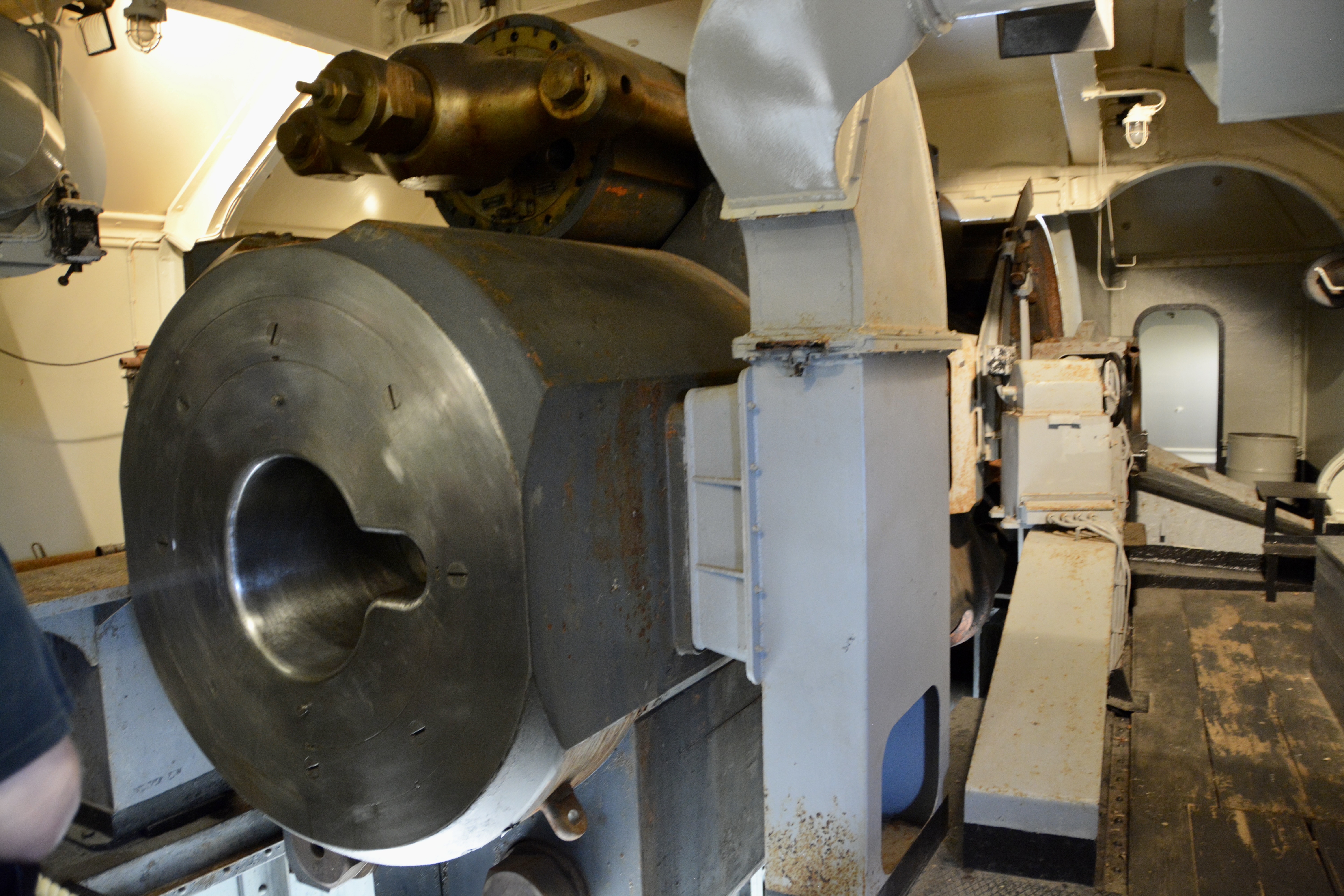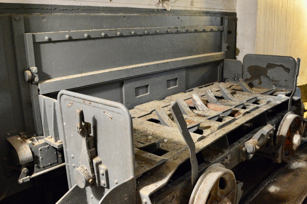 The guide recounted a story from a previous tour when she described how the access point in the underground area was used to move the bombs to the elevator to be loaded into the cannon. During that previous tour, she told the tour group that no one knew exactly how everything worked. One of the tour participants, an elderly man, walked forward and began shifting levers and opened the hatch. He had been stationed there at age 16 as a German soldier.