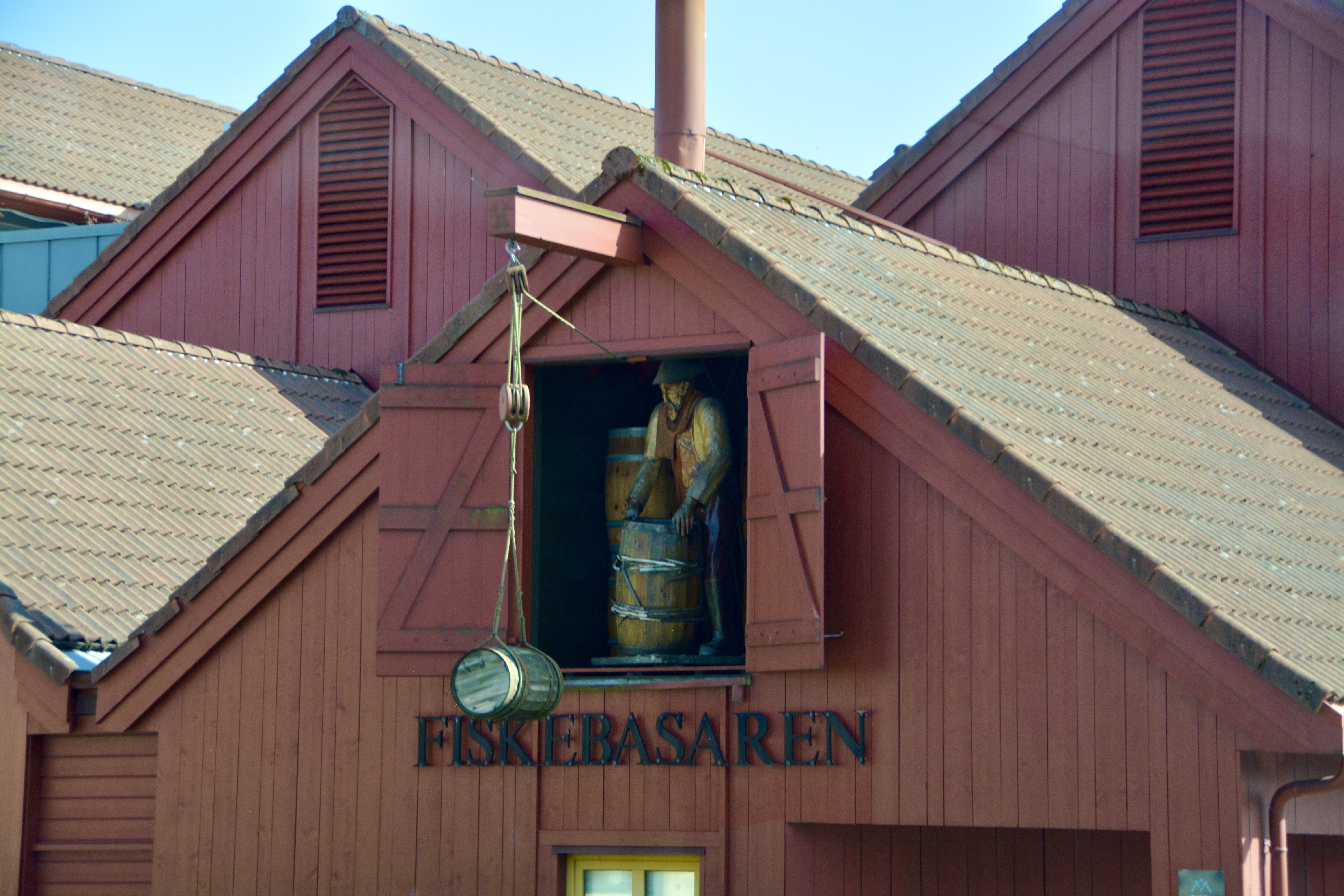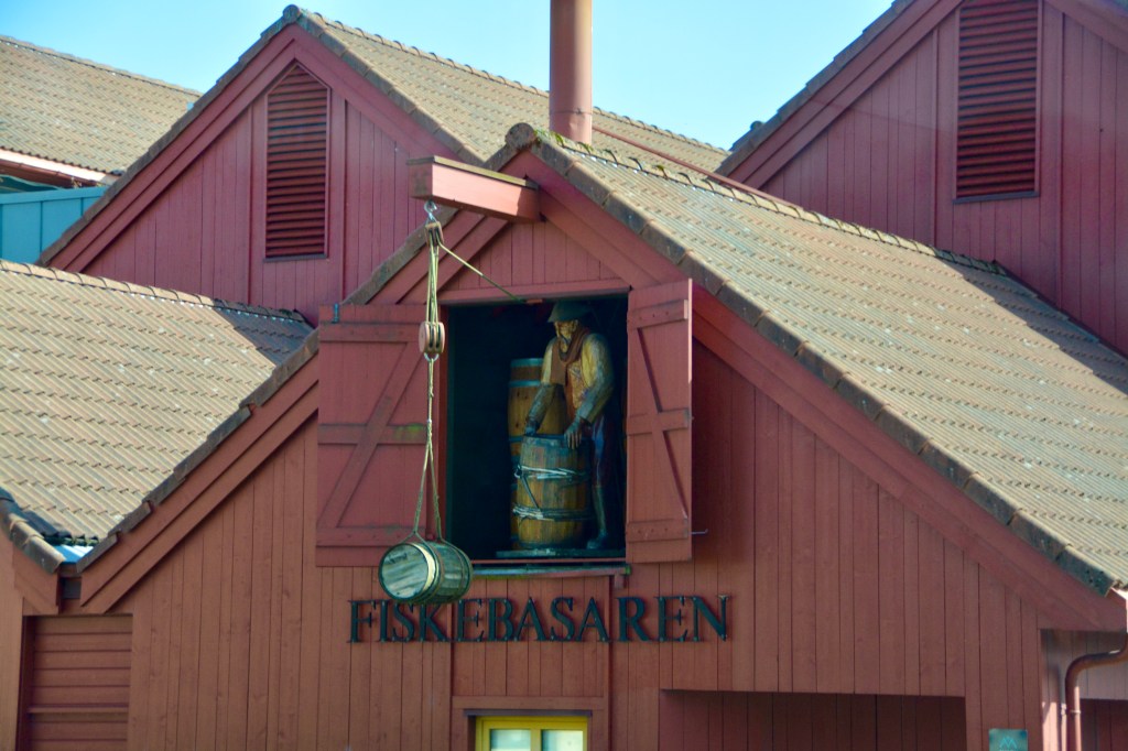 Our final port in Norway is Kristiansand. We were tired from our late night, so we were glad that we had an afternoon excursion. It was a little strange not to see mountains after that was part of every other location we visited. Had I realized how lovely the town was, I would have made the effort to get up early and go out. We by-passed the tented exit since we were on an excursion, but Joanne who sits at the table next to us said they had maps and information about the area available. From the pier you could walk to the nearly and newly refurbished area, the old fish quay Fiskebrygga, where you can still find a fish market, but the area is now the home of lots of upscale and fast-food restaurants.