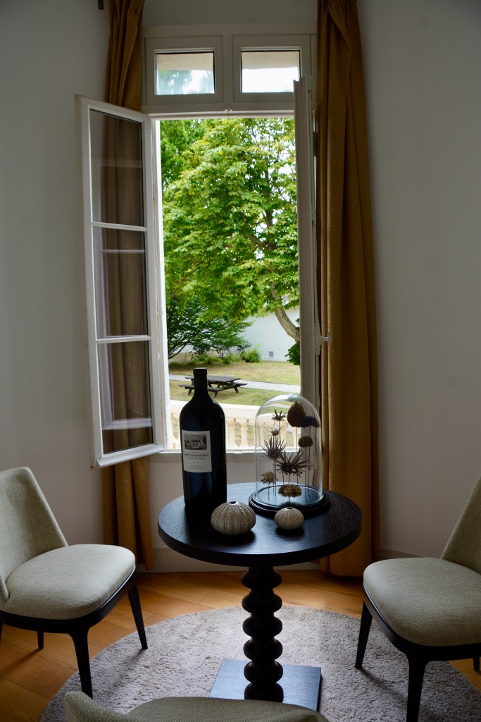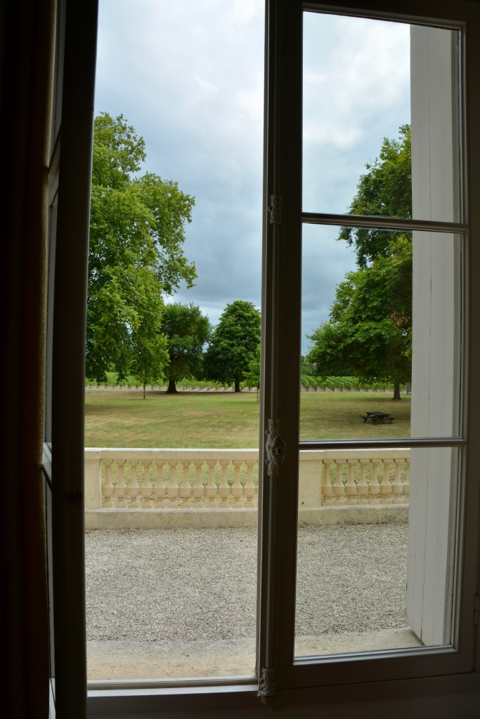 We visited the beautiful chateau first. The ground floor has been renovated to accommodate visitors for an orientation and wine tasting. We entered from the back and then went out through the front to see the vines, before returning for our tasting.