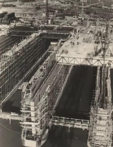 The concrete roof of the base is 9 meters (almost 30 feet) thick. On top on that roof, there was a fangrost or “bomb trap/screen” to further protect the submarine base from aerial attack. The fact that it is still standing suggests the detailed construction served its purpose. “During the 22 months of its existence, 43 U-boats were assigned to it in order to carry out attack missions in the Atlantic Ocean, near the American coast, and resupply missions in the Indian Ocean.” bassin-lumieres.com