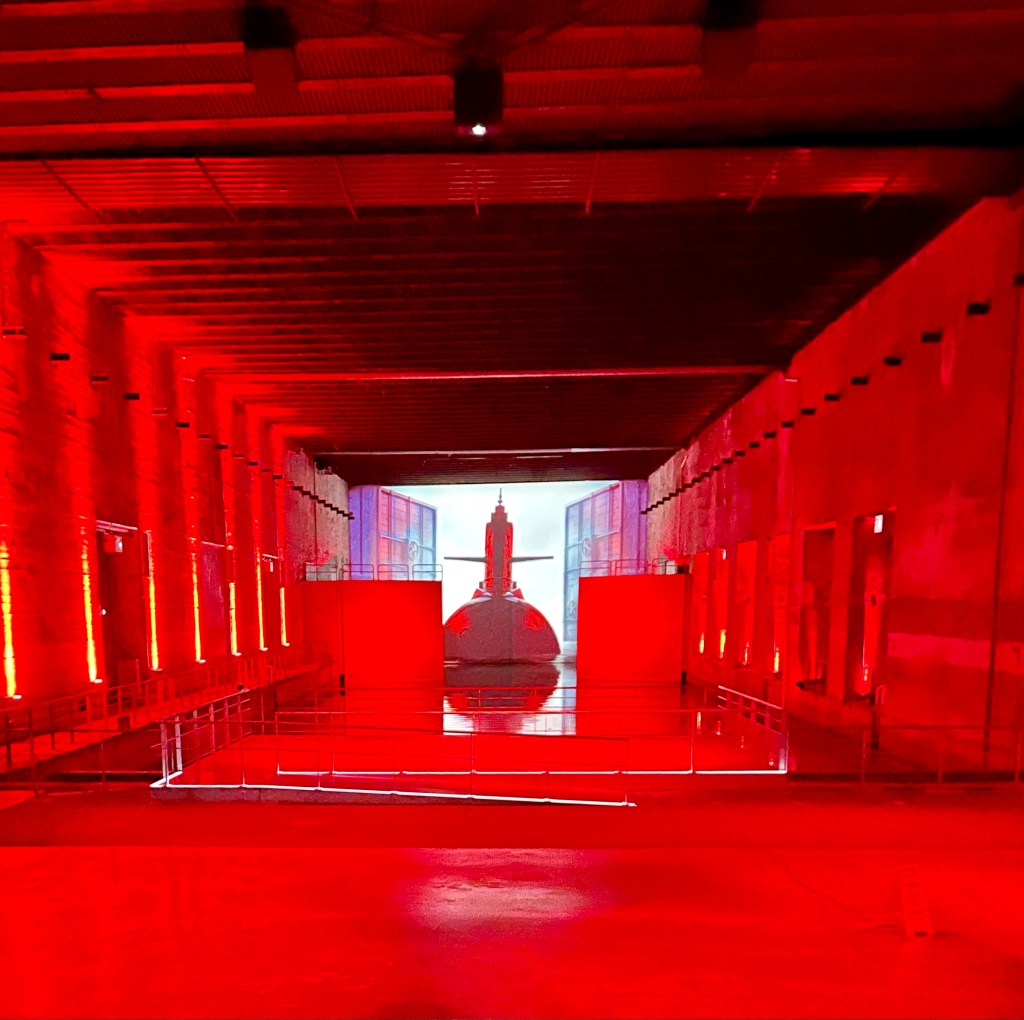 After WWII the base was taken over by the French Navy and the U-Boat Bunker was entrusted to the port of Bordeaux. The bunker was mostly intact. It was used by various companies from the 1960s to close to the turn of the century. In spite of its bleak history, today it has been repurposed to serve as a museum and a theater for an amazing light and sound show. The site was both created and is managed by Cultural Spaces. These types of productions are set around the world and sometimes travel. The Museum of Fine Art, Houston had one of the expositions. We also saw another one of types of presentation in an old quarry in Les Beaux de Provence, France.
