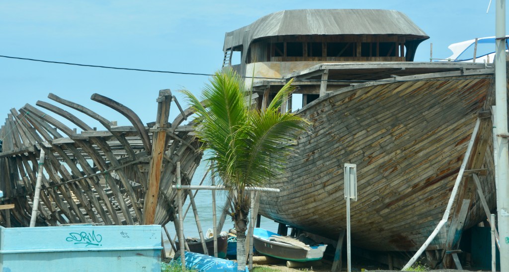 Manta is Ecuador’s largest seaport. We saw the large fish market and the many stands where you can pay to have the whole fish cleaning for you. It was already midday so activity at the market was winding down. Farther down the road was a family shipbuilder and we saw several boats in various stages of production. It is difficult to get a permit for a new boat as they try to maintain the fish population and don’t want the area over-fished.
