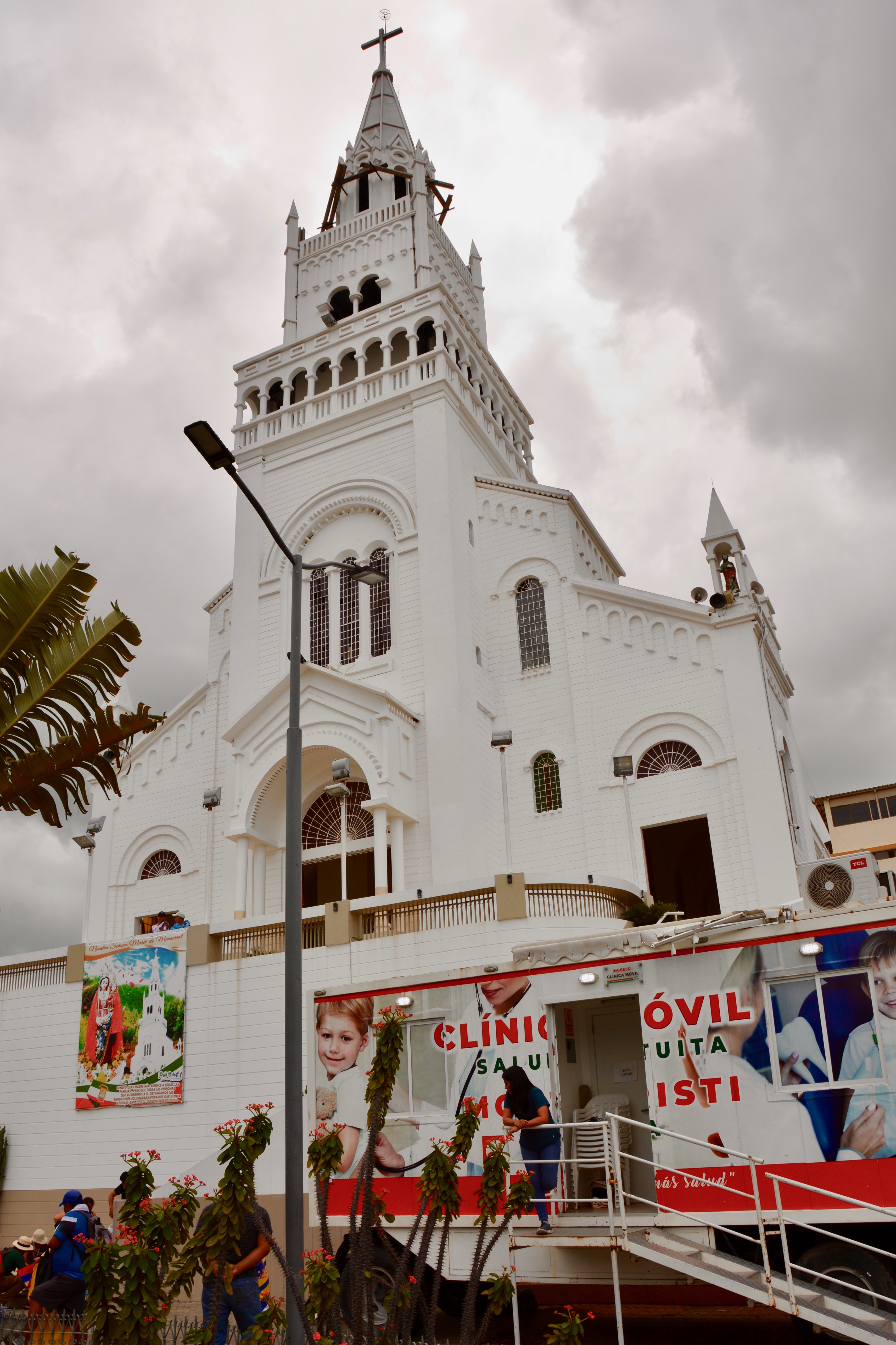 Reaching the top we came to another section of the city in the renovated Puerto Santa Ana sector. In contrast to the directly adjacent Las Penas Barrio, this section was dominated by large, extremely modern buildings. From this location, we also had a wonderful view of the waterfront and the cable car transportation system. In the United States, these gondola rides (except in ski areas) are more for entertainment than transportation. The one in Guayaquil was built to bring people into the city center for purposes of commerce. Depending on your stop, it is a 15-20-minute ride instead of a 1.5-2-hour journey to cross multiple bridges to make it into the commercial center. The cost of a ride is $0.70 each way. There is also a Ferris Wheel on the waterfront. It was early and it was not yet operating for the day, but the cost for a ride is a good deal at under $4.