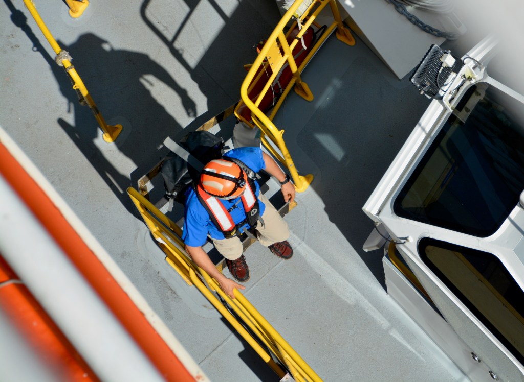 Today is the big day. Natasha is making a full transit through the Panama Canal going from the Pacific Ocean to the Caribbean Sea in the Atlantic Ocean. I was so excited this morning, that I woke up when the engines on our ship started. I even caught a picture of the pilot boarding our ship before first light. The pilot and the line handers are all Panamanian and you are required to allow them entry to go through the Panama Canal. The Panamanian line handers will board our ship and pass our crew the lines to secure the ship.