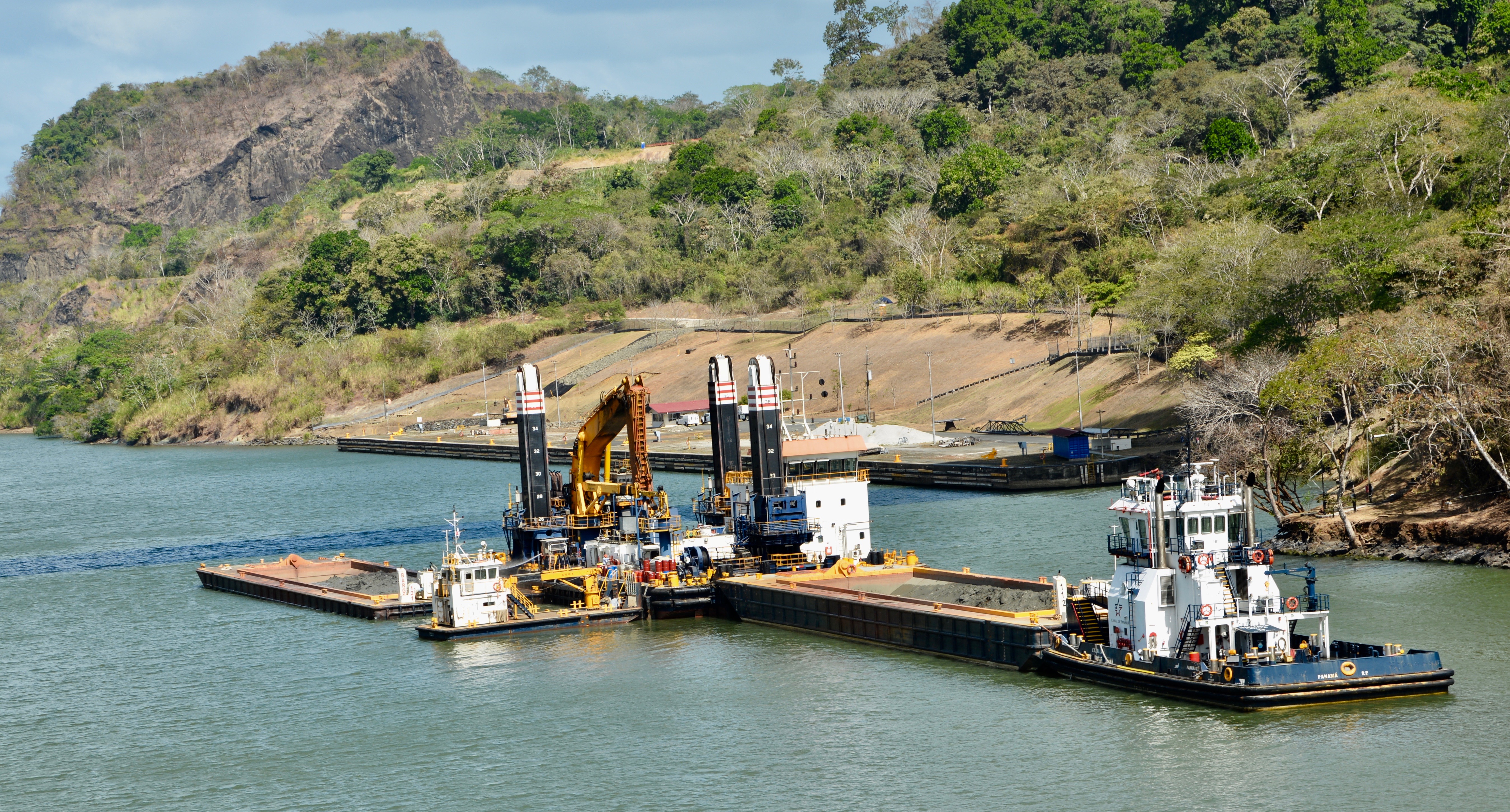 In the water, we saw a land dredge attached to a barge. When the barge is full, they simply move it and redeposit the fill somewhere else. It is a suction dredge using a pipe to put the material directly out of the water and into the barge; there is no need to scoop up and drop the material into the barge. The dredge is removing silt that flows here from the Chagres River or silt that accumulates here after heavy rains.