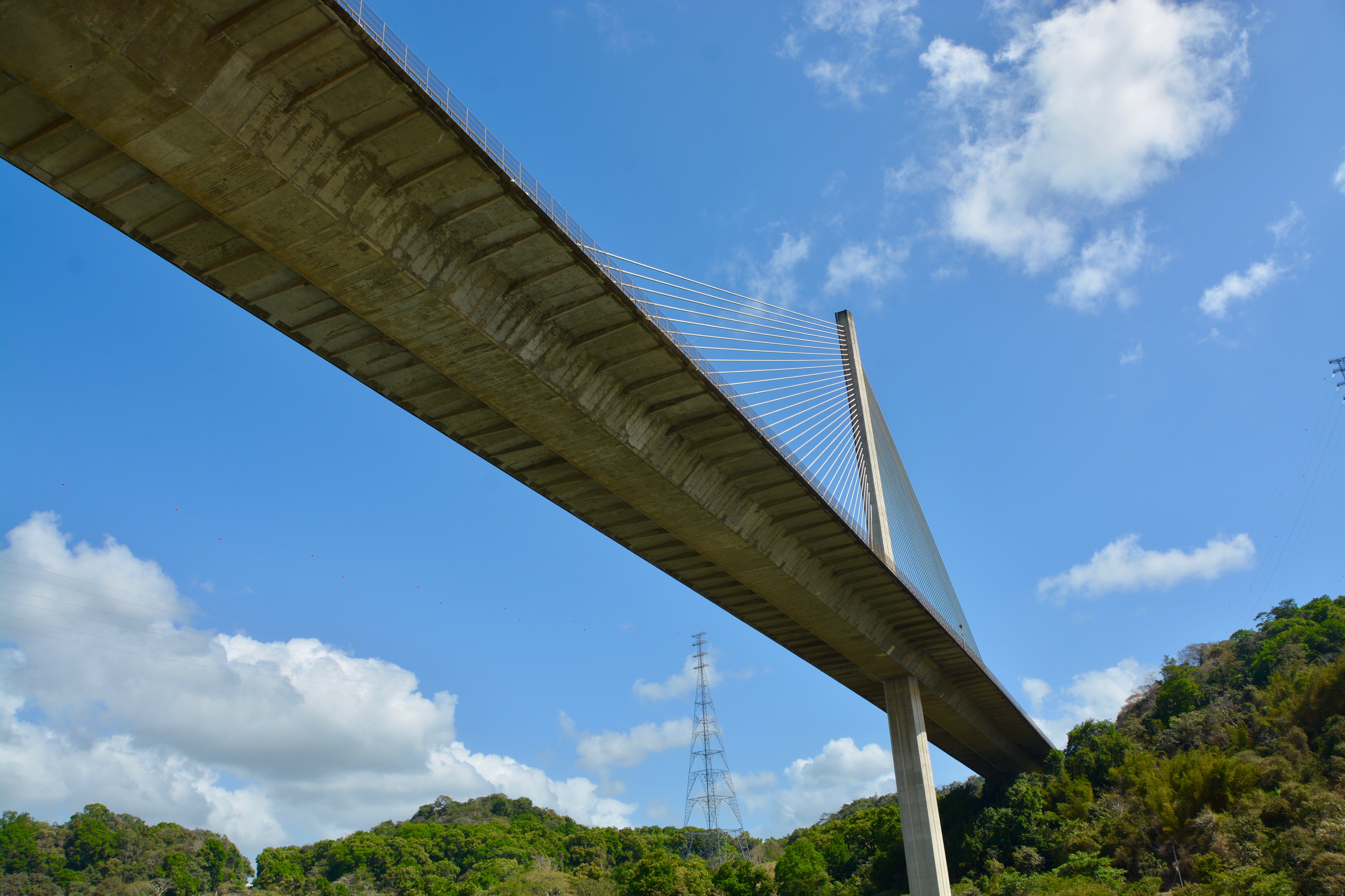 Afterwards we went under the Centennial Bridge and I enjoyed getting some pictures under the bridge. We were now in the Culebra Gap. It is narrow here, so traffic is only one way. We are traveling north. There is one northbound convoy and one southbound convoy during the day and one of each at night. Both start out at the time. Because of the direction we are traveling, we have made our three steps up (two at Miraflores and one at Pedro Miguel). When we reach the final set of locks, we take three steps down before passing into the Caribbean Sea.