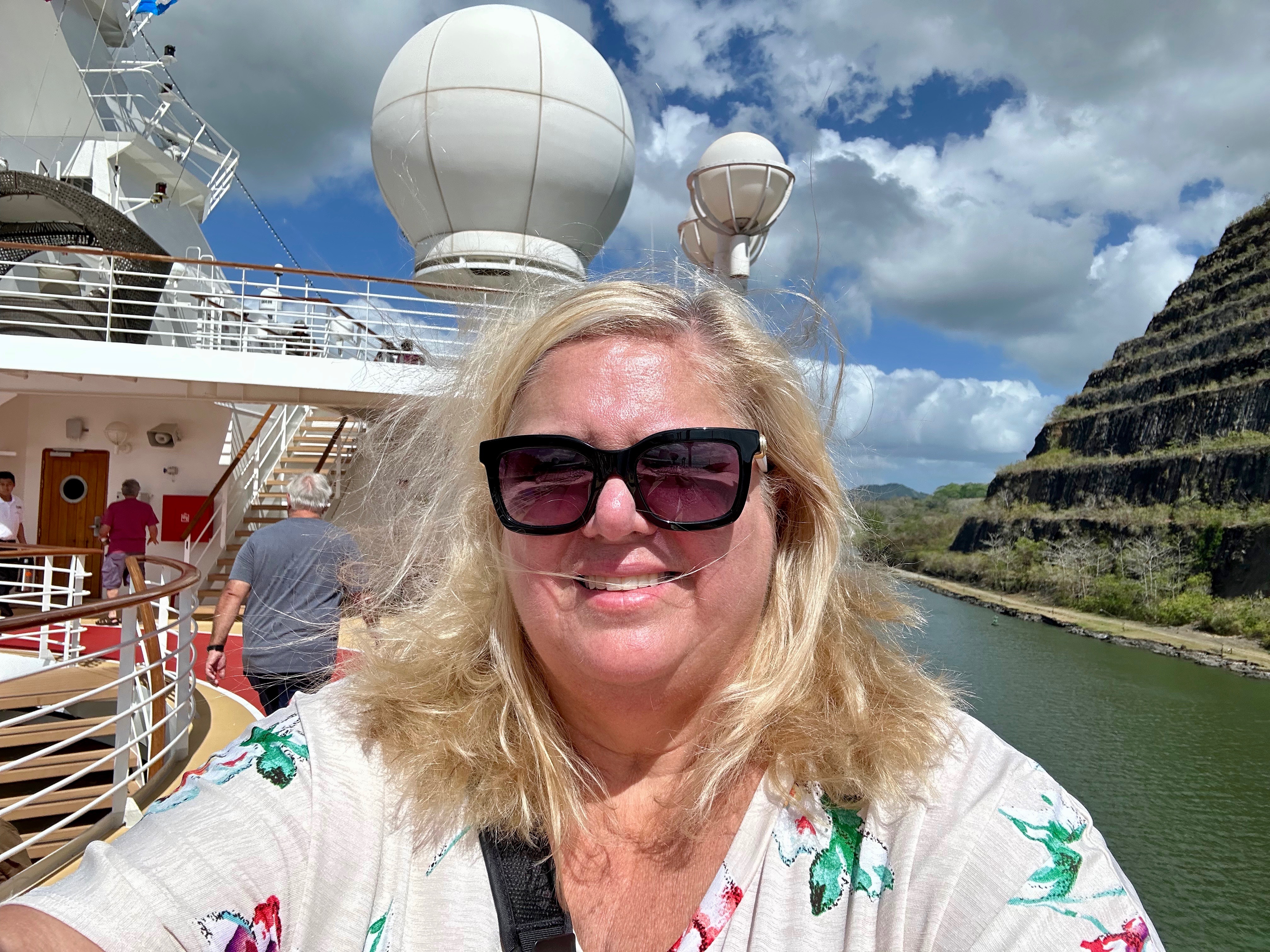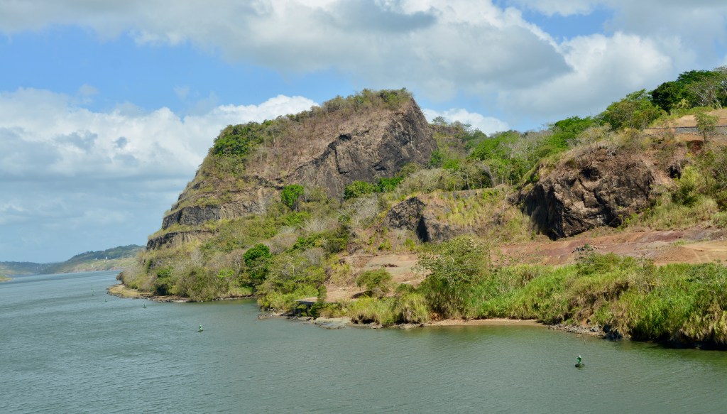 It was a moving moment for me as we passed through the narrowest part of the Culebra Cut and the continental divide. I was still outside and enjoyed getting some selfies from the deck 10 above the pool. After the narrow point in the continental divide, we saw a drill in the water. This is new and Panamanian built. They are very proud of their design and construction. The old drill, Thor, is still used occasionally.