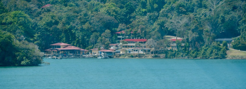 Also on the starboard side just past the cranes is the dock for the Smithsonian Institute Journey (orange buoys). A little farther up north (less than an hour later) and on the opposite side of the canal, we saw the buildings that make up the institute itself. Our speaker used to work there and highly recommends the experience. Many people come out to explore the rainforest near Gamboa.