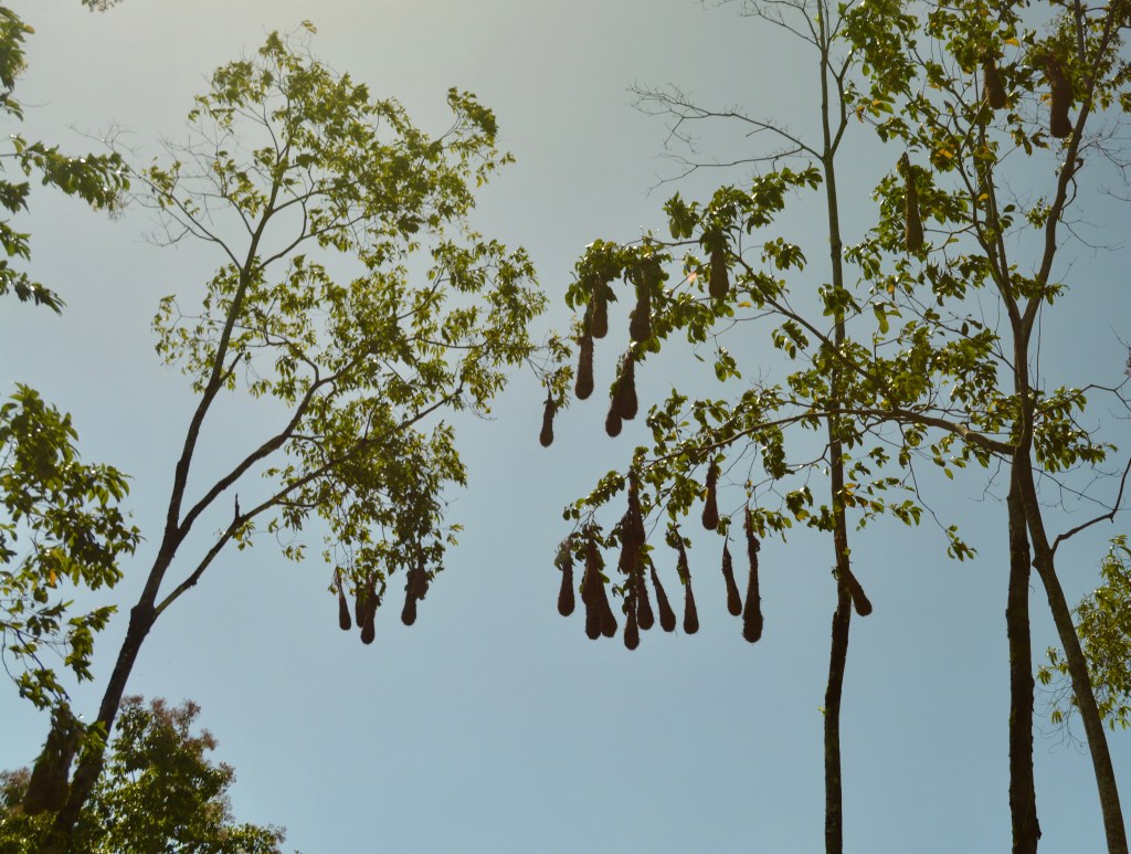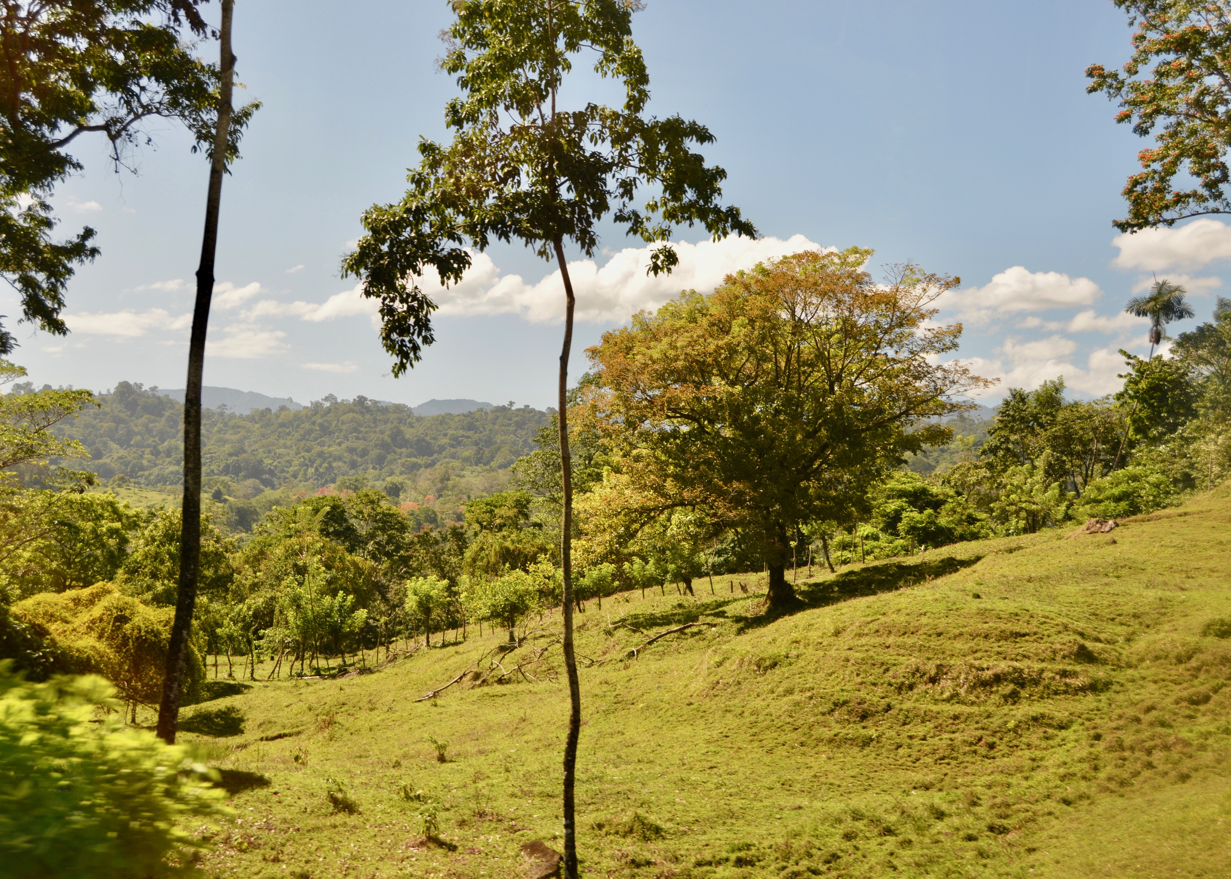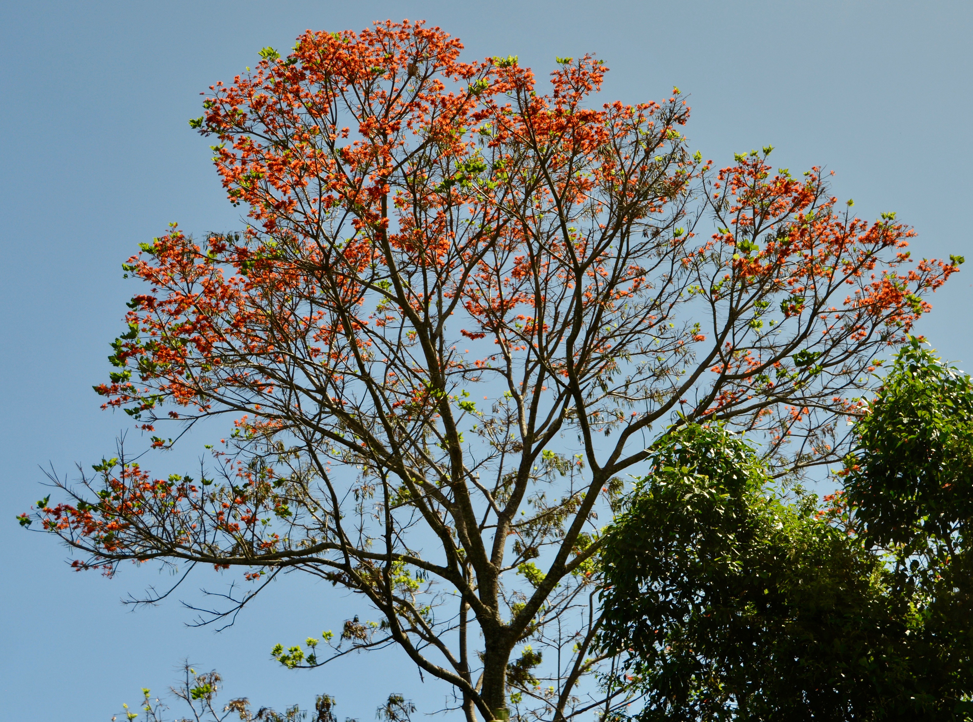 I guess I should have been glad that at least the main road was paved. When we ventured off the road to reach the research center, the Veragua Rainforest Park, it was even rougher going. Looking up into the hills, I almost looked like the leaves were changing color for the season. Actually, they were flowering trees with a lovely orange-red flower canopy that originated in Africa.