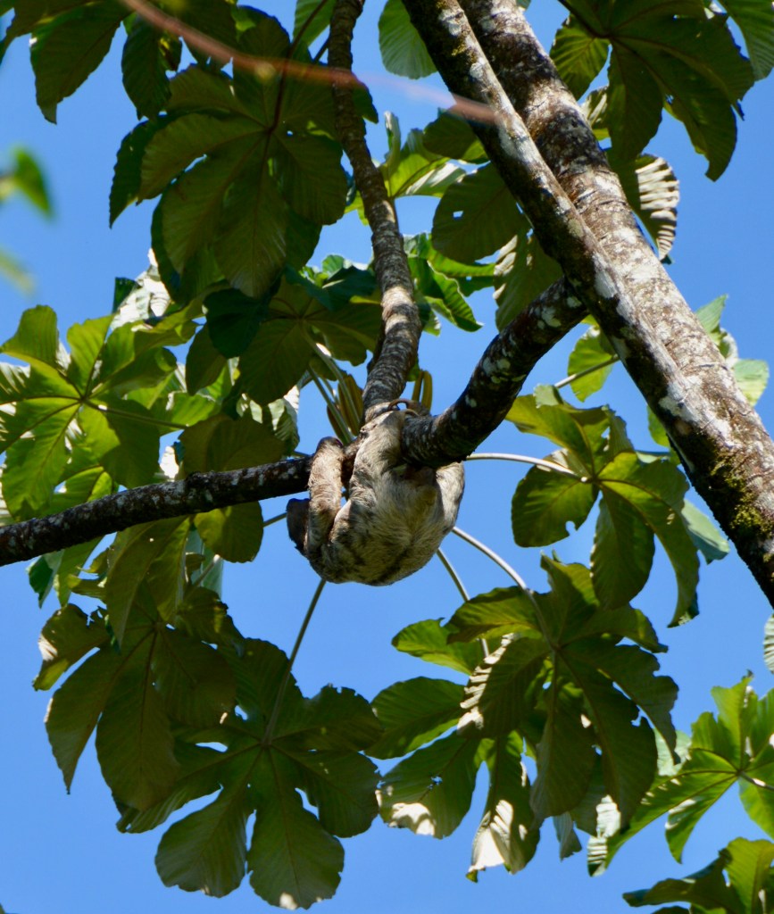 Just as we were about to get back on the bus, another sloth was sighted. After picutures, we headed out of the park and once again had to endure the rough roads. On the way back the guide gave us a little more insight into the economy of Costa Rica. It is a beautiful country, but food can be very expensive to purchase. Conversely, cell service is quite inexpensive. Cars are often very expensive, but repairs are not. Our guide drives a 24-year-old SUV that he bought when it was 15 years old. With the rough roads, you could see why you would need a good mechanic and affordable repairs.