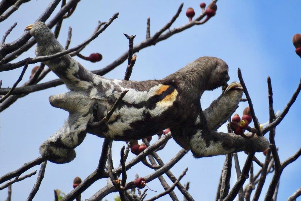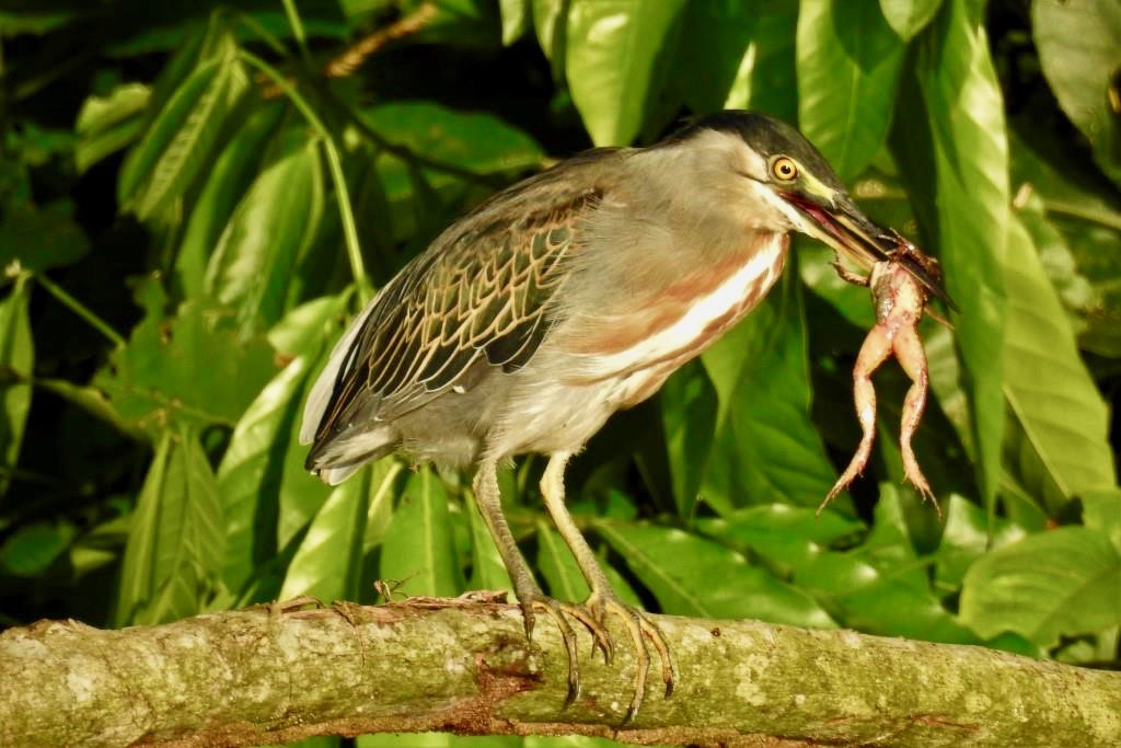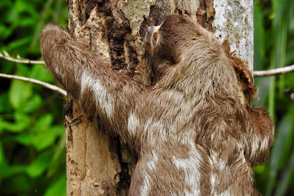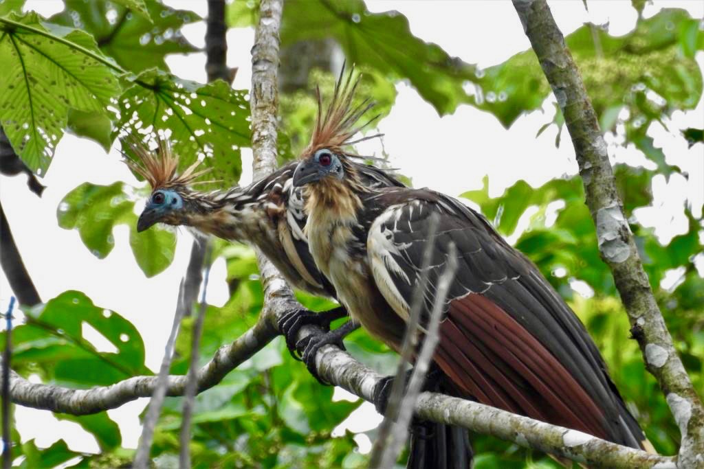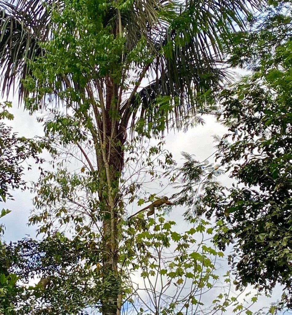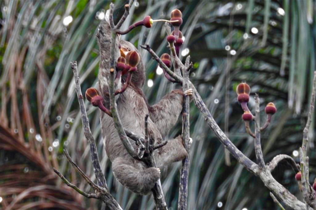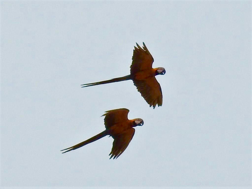 While we have been fortunate to see sloths everyday, it was unusual birds, some we hadn’t yet seen, that dominated the day. We saw two pairs of blue and yellow macaws and a pair of scarlet macaws in flight. Although we see them in aviaries at home, seeing them fly over the river in their natural habitat is a sight to behold.